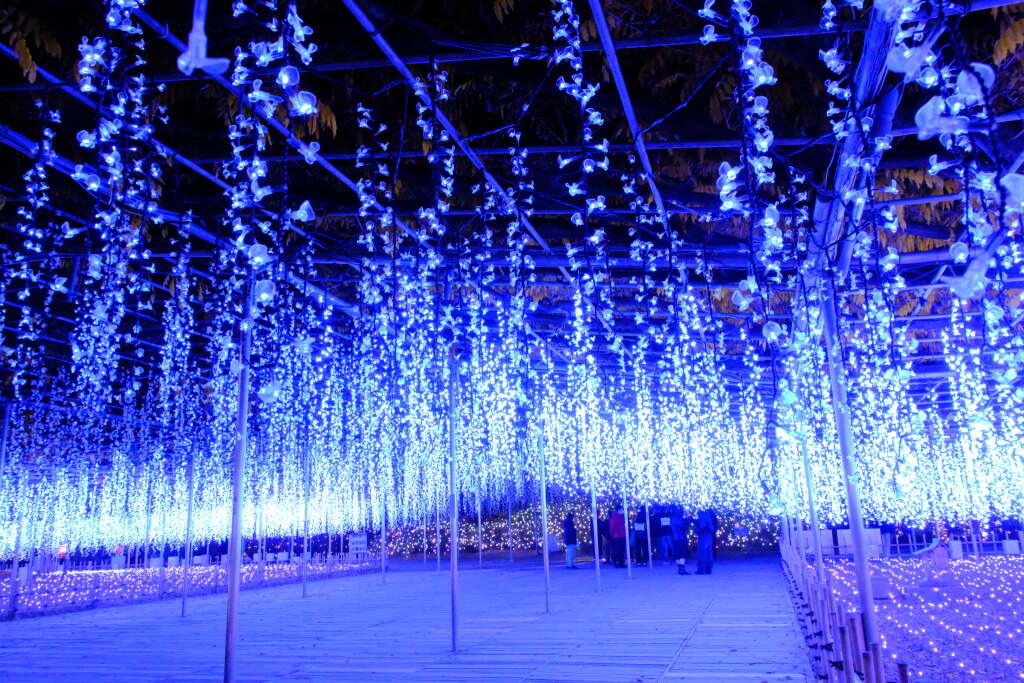At Ashikaga Flower Park, a large-scale illumination event is held during the winter season.