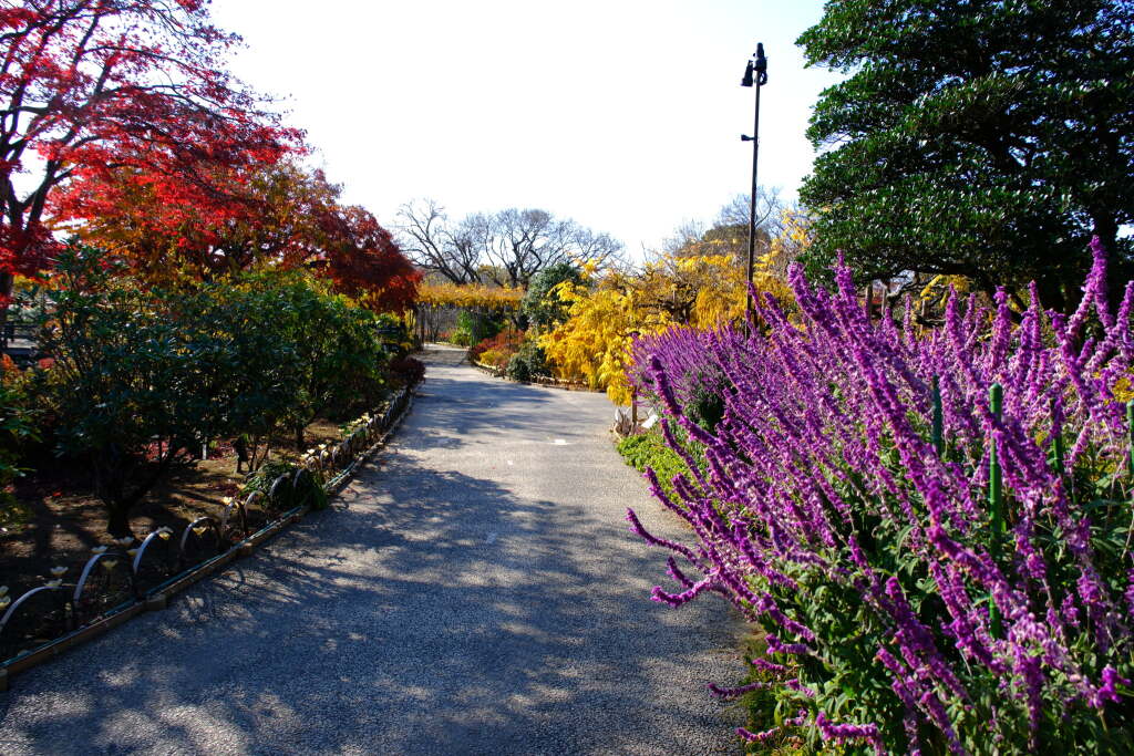 Visitors can enjoy seasonal flowers throughout the year, but the park is especially well known for two major highlights: wisteria in spring and illuminations in winter.