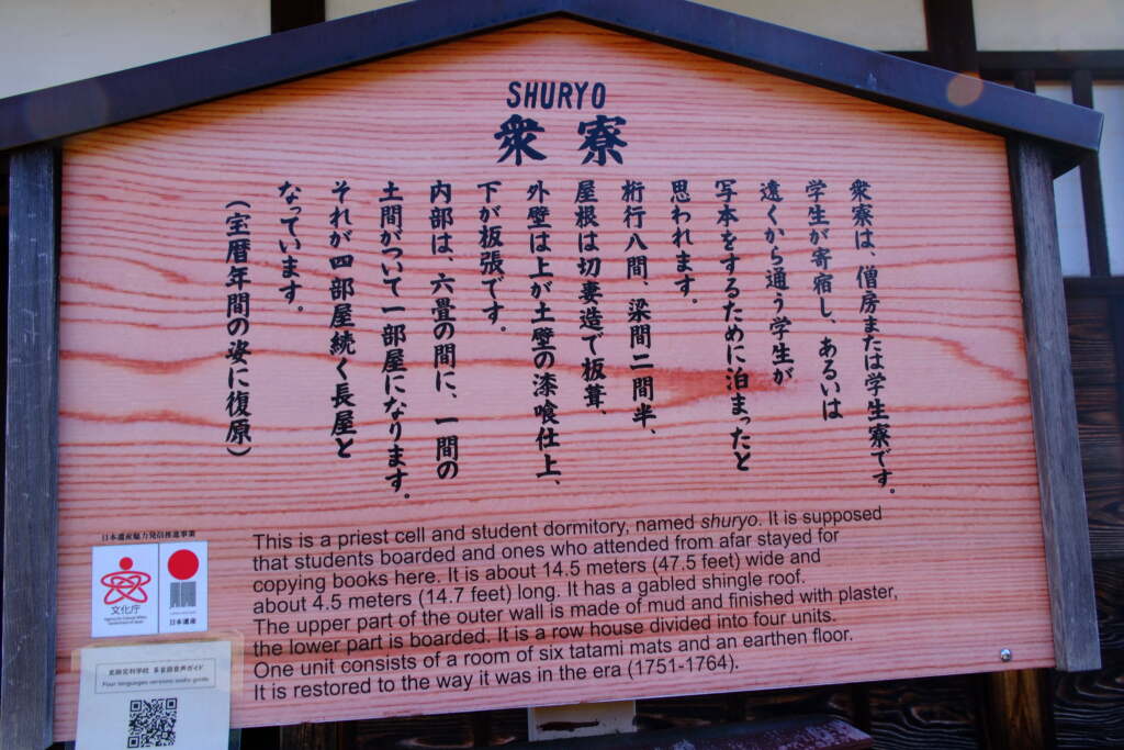 Some students lived here while studying, and it is also said that students who came from far away stayed overnight—especially when they needed time to copy texts by hand (manuscript copying).