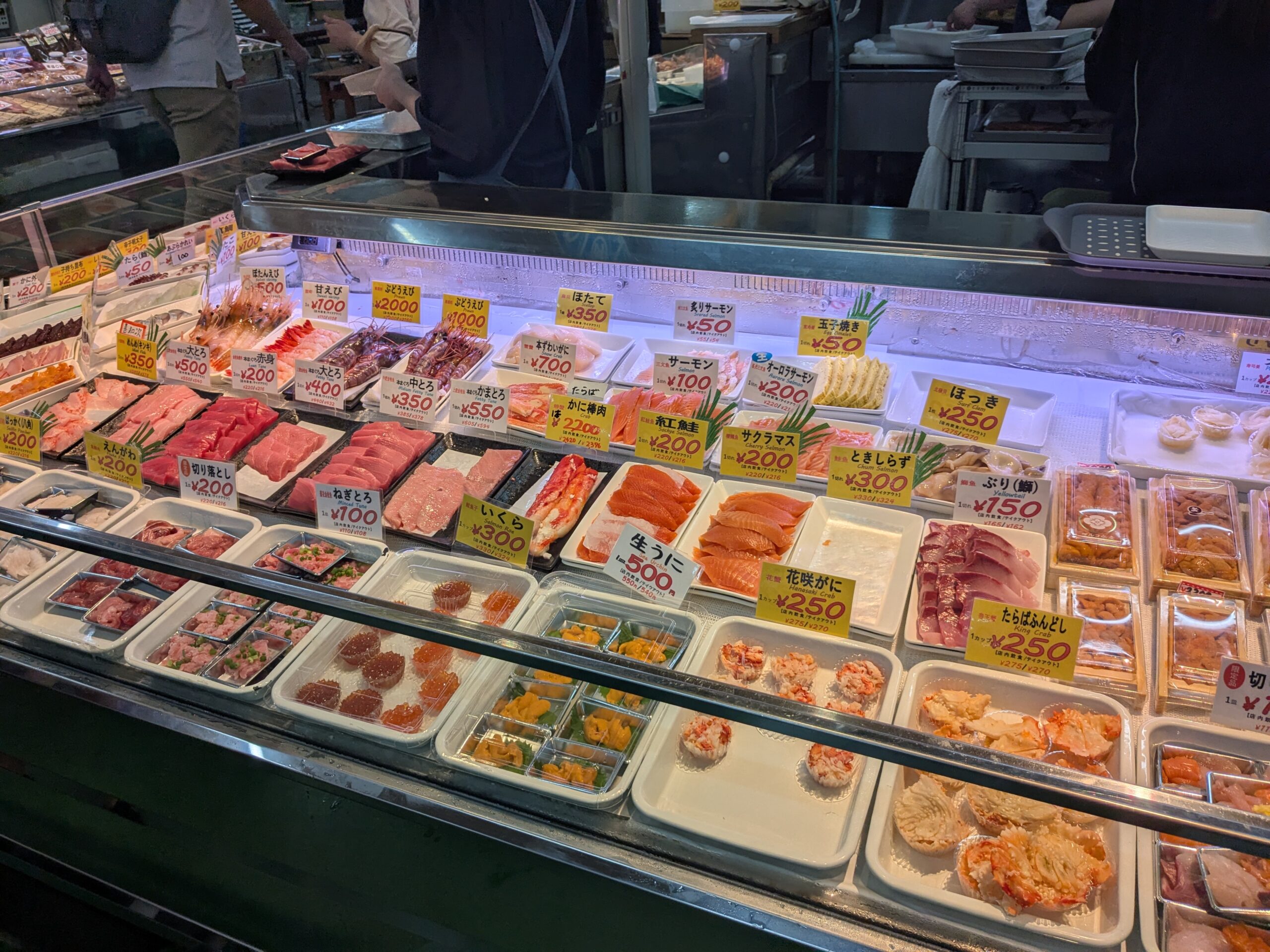 Washo Market is famous for its “Katte-don” (literally “do-as-you-like bowl”). “Katte” means “freely” in Japanese, and here you can build your own seafood rice bowl by choosing your favorite toppings. Unlike standard seafood bowls, rice and toppings are purchased separately.