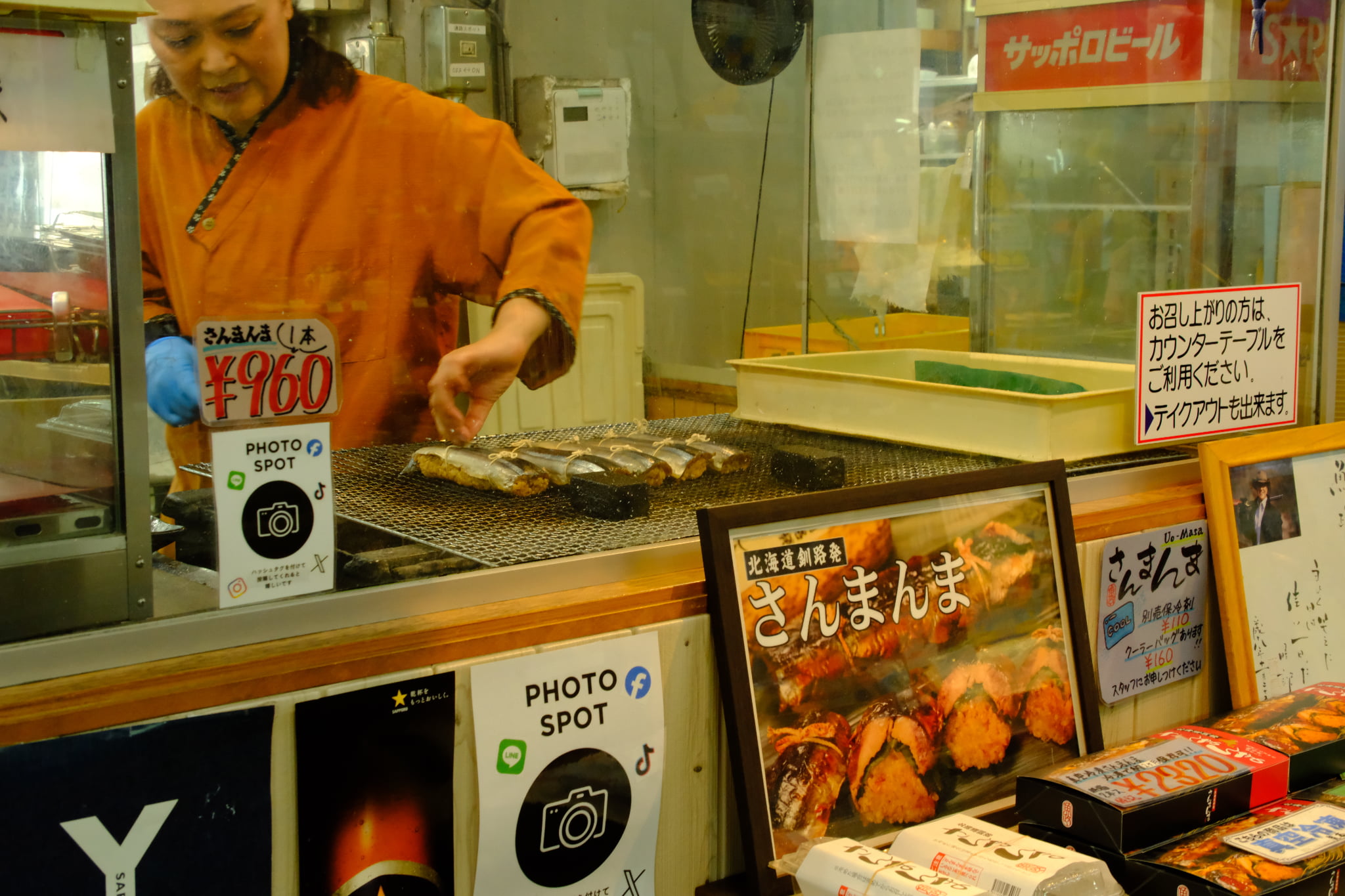 Souvenir shops and small eateries line the floor. It’s a good place to shop for local specialties. Kushiro’s famous Sanmanma (grilled Pacific saury wrapped with rice) is especially popular.