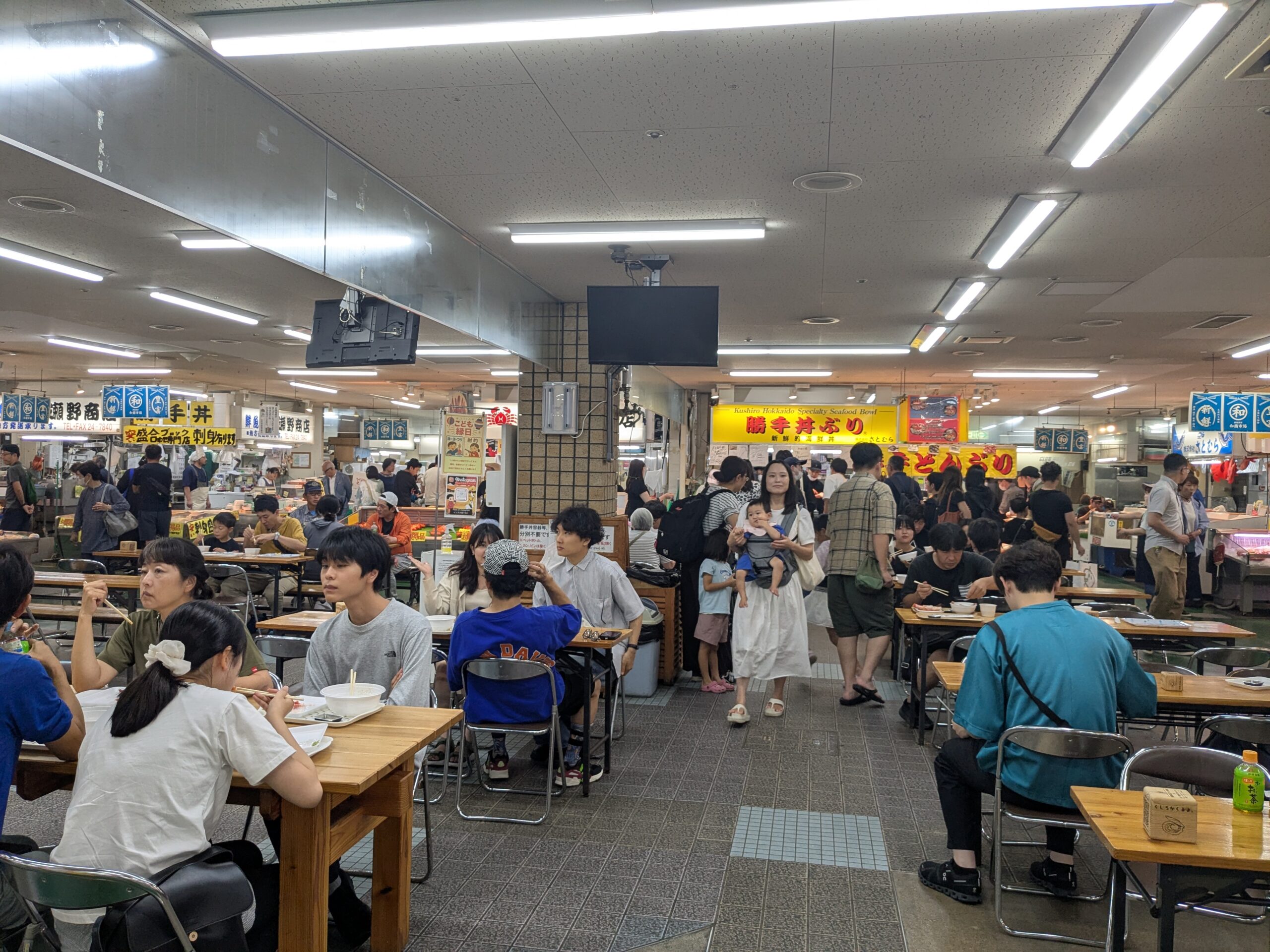 You can also enjoy Katte-don here. At Hashimoto Shokudo, for example, you can order set meals or select your own seafood for a personalized bowl. They also serve grilled fish and meat dishes, making for a varied menu.