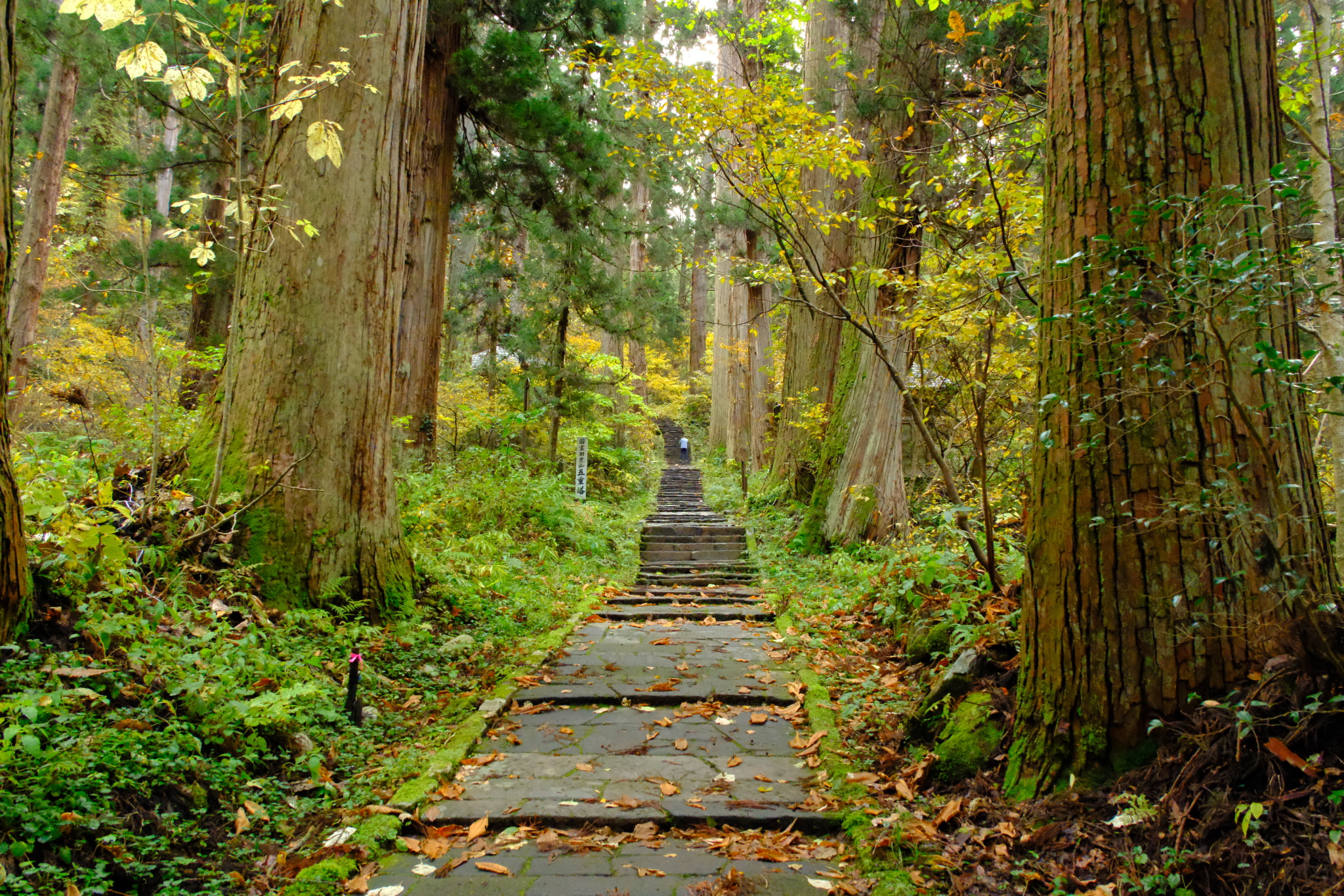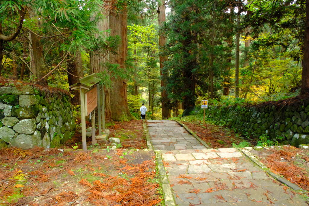 Let’s head toward the summit of Mount Haguro. Follow this stone-paved path.