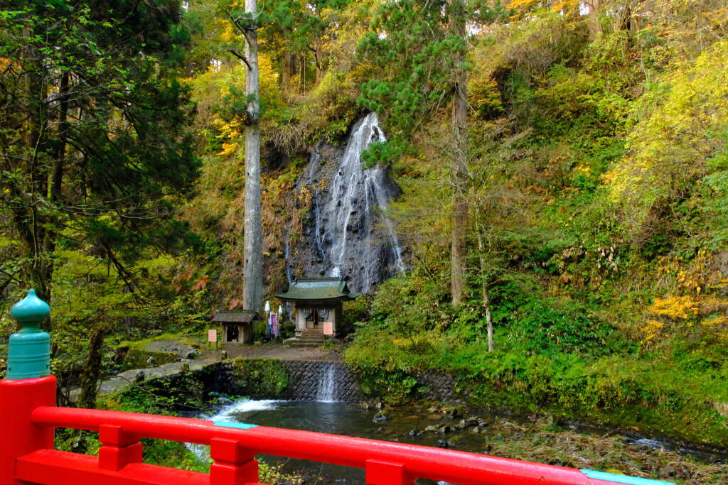 A waterfall flows beside Shinkyo Bridge. It is called Suga-no-Taki. In the past, it is said that visitors purified themselves in the Haraigawa River before beginning their worship.
