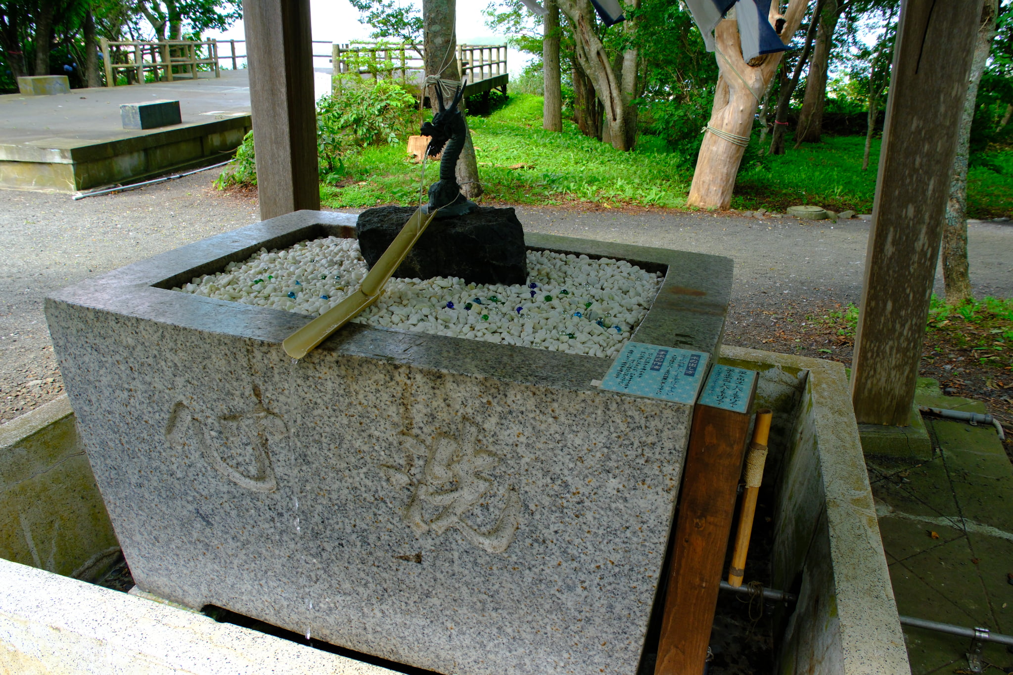 A temizuya is a traditional water basin found at Shinto shrines, where visitors cleanse their hands and mouth before praying.
