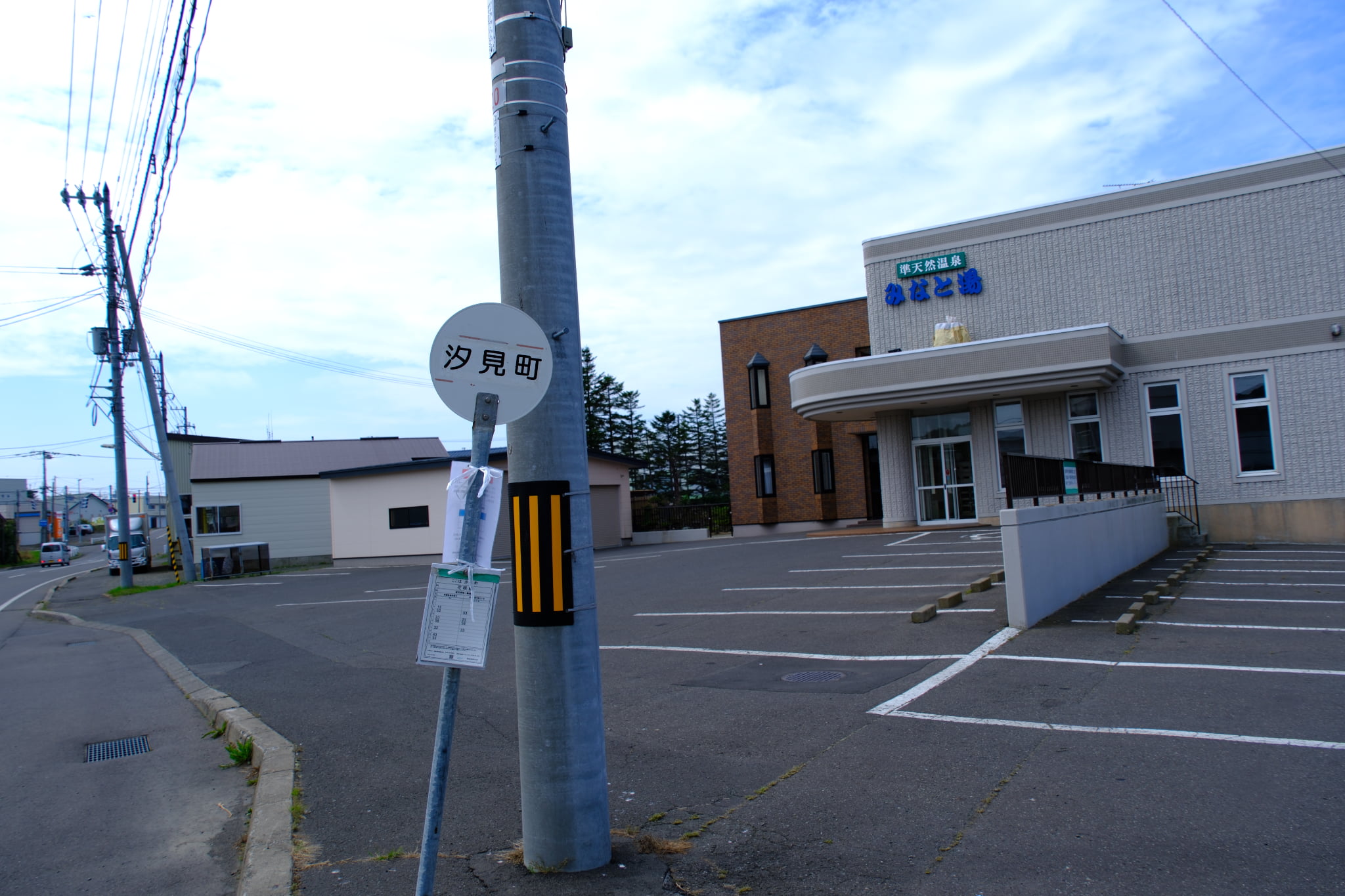 The Shiomi-cho bus stop is located in front of a public bathhouse.