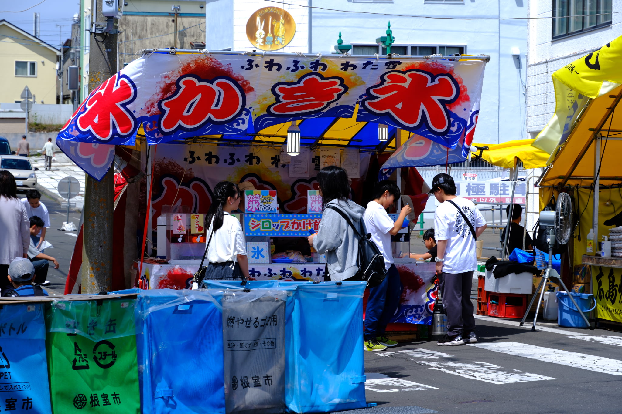 During the festival, mikoshi (portable shrines) and dashi (festival floats) parade through the streets of Nemuro, while food stalls line the roads in the evening, creating a festive atmosphere.