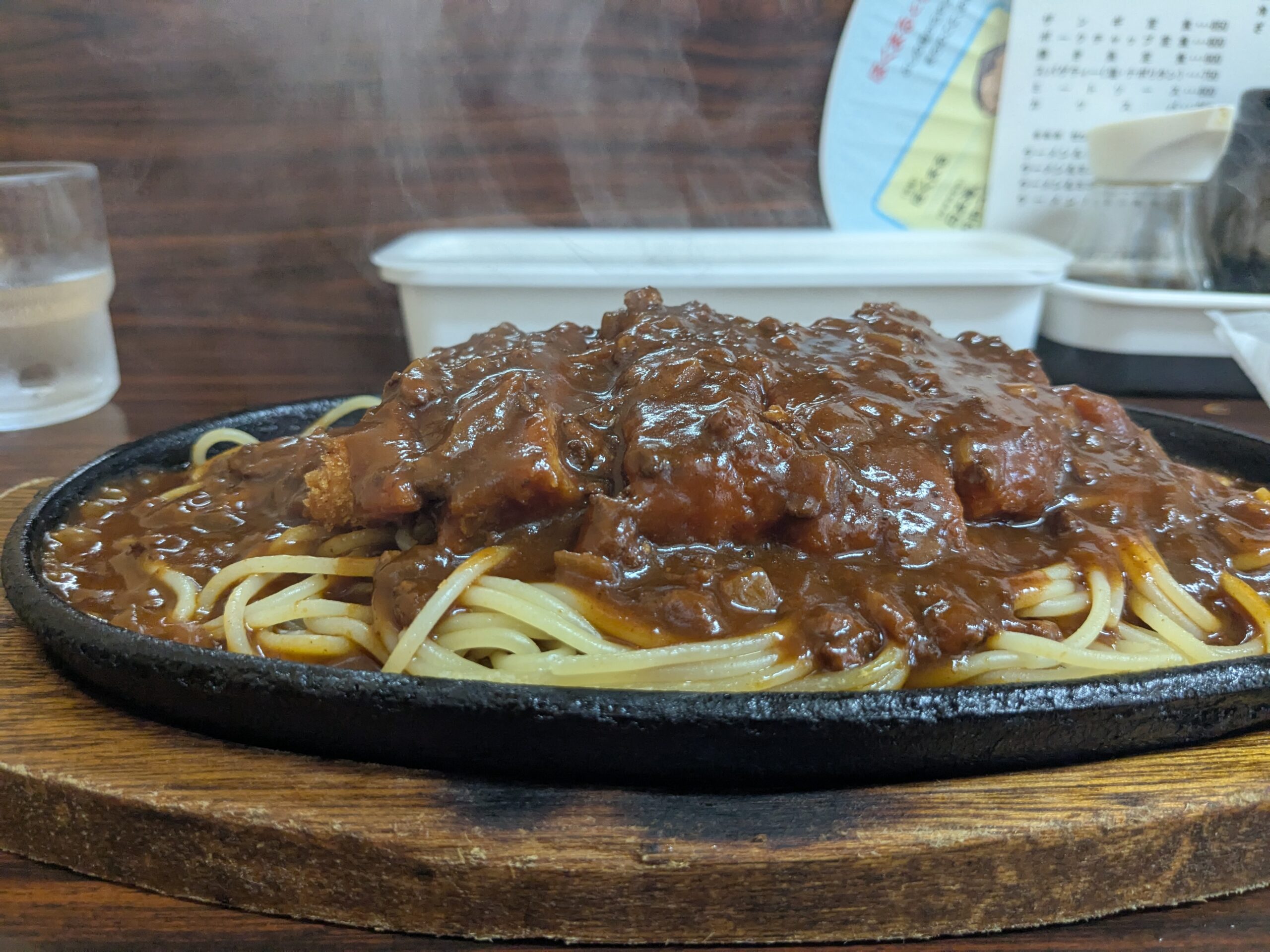 It consists of pasta topped with a breaded pork cutlet, finished with rich meat sauce.