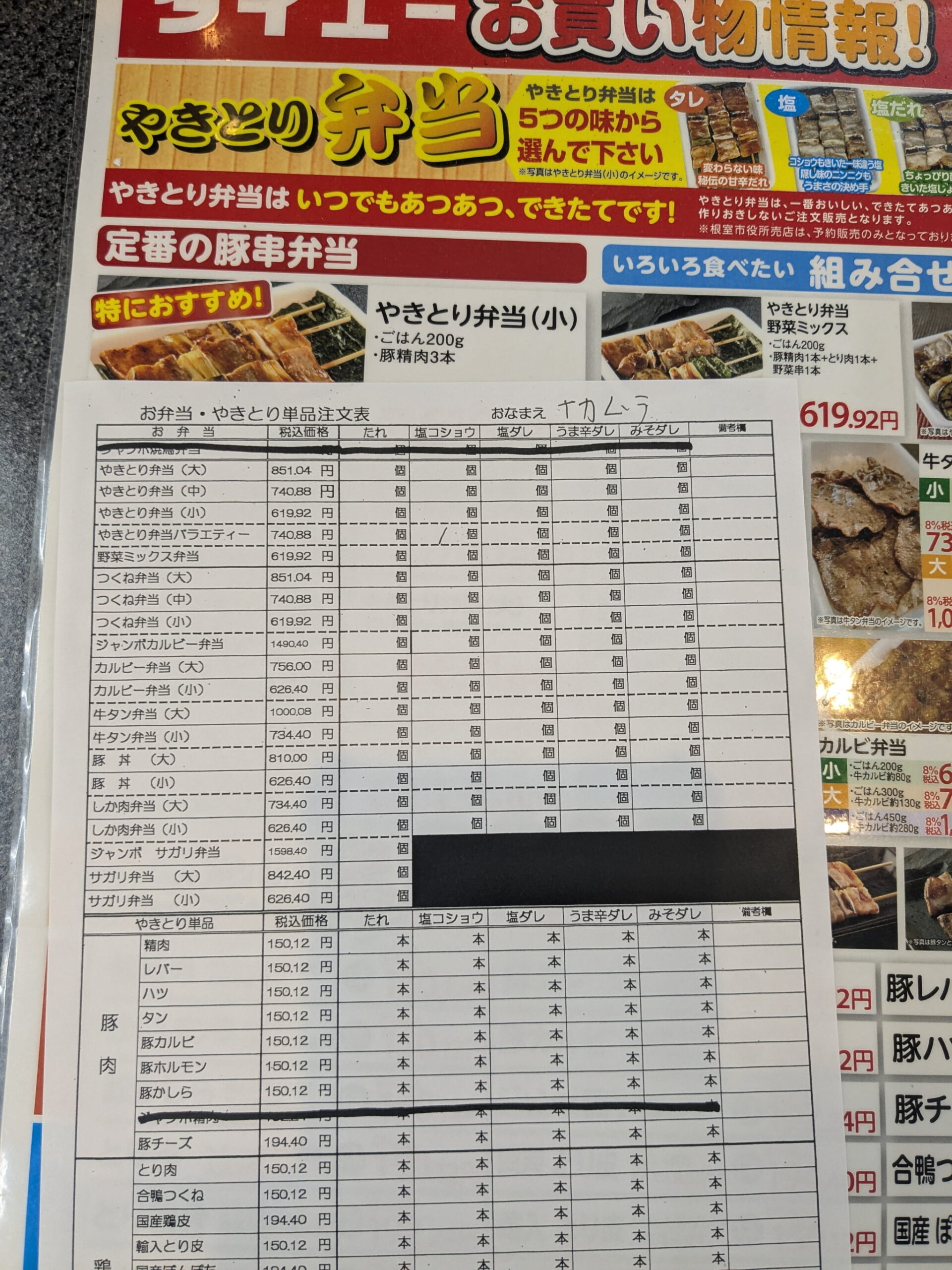 The most popular option is the Yakitori Bento (Small) — it’s the top-left item on the menu.